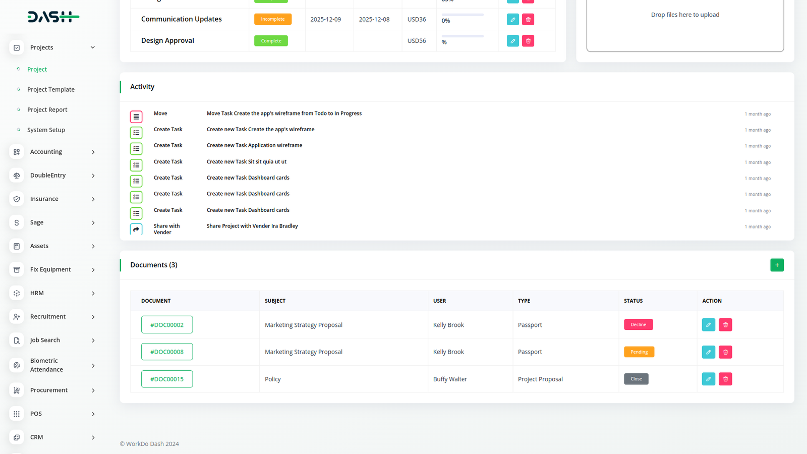 Experience the seamless integration of Dash SaaS's Documents Integration with the Project Module, revolutionizing project document management. Effortlessly link project-related documents, streamline collaboration, and enhance transparency within your project teams. With centralized document organization and project-centric features, empower your teams to achieve greater productivity and efficiency in project execution.