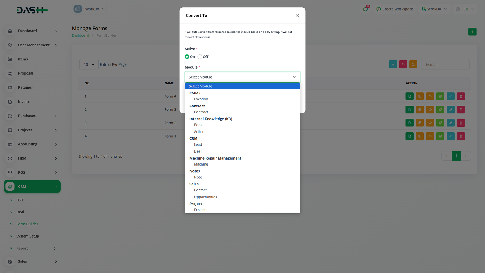 Within our platforms Actions section, youll find a range of functionalities tailored to streamline your workflow. Here, you can effortlessly copy the form link, access form field editing or viewing options, review responses, and seamlessly convert forms into leads or CRM entries. When transforming a form into a lead, all details are seamlessly transferred to the lead column. Conversely, converting it into CRM enables convenient form filling directly from the frontend. Additionally, you retain the flexibility to edit the form name to suit your preferences.