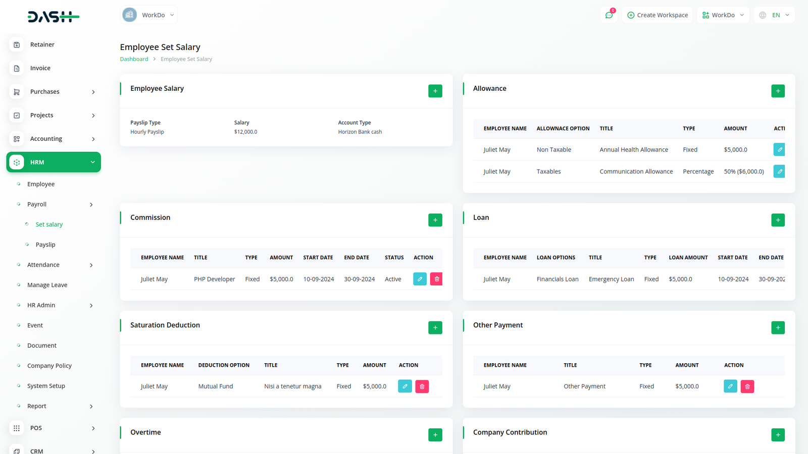 This comprehensive feature facilitates the activities of HR. It is easy to maintain a record of promotions, transfers, work trips, terminations, warnings, and other important aspects of HR.