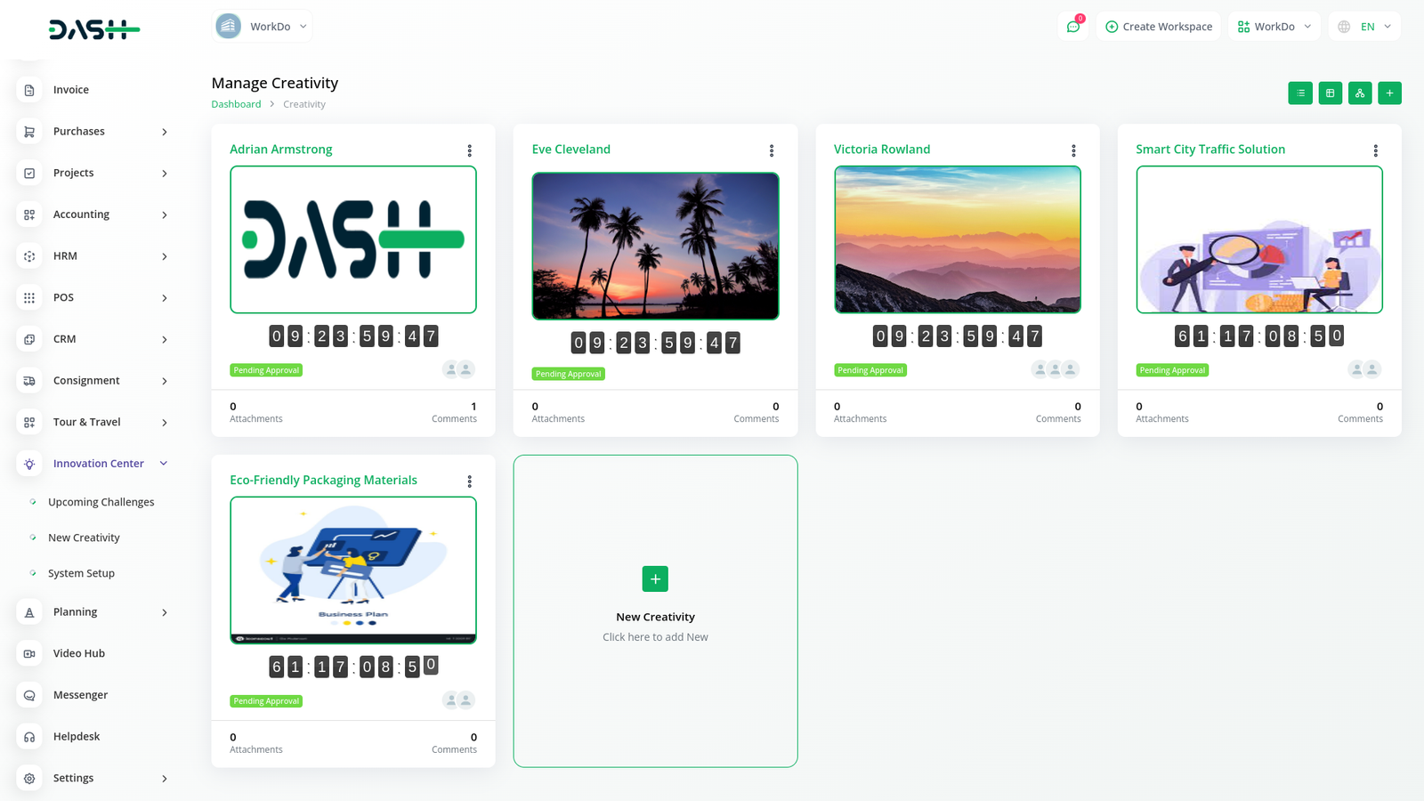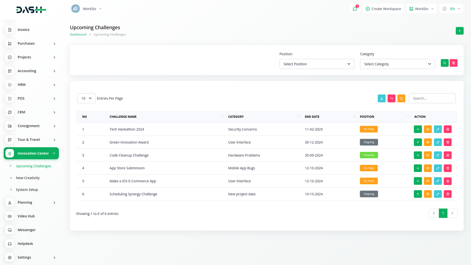 In the Innovation Center module, you can create a challenge related to your project, business, or company. You can also set a deadline and provide an explanation and description for that challenge.
